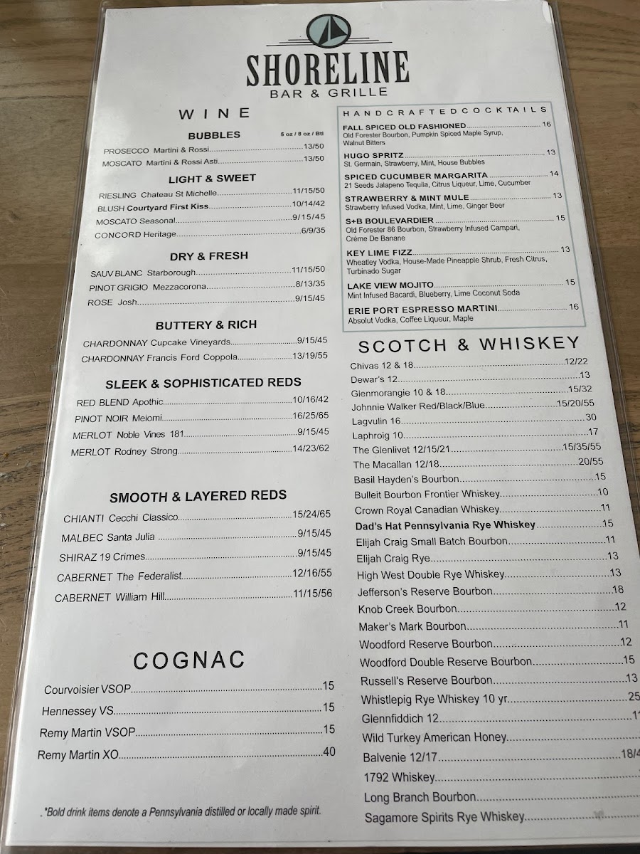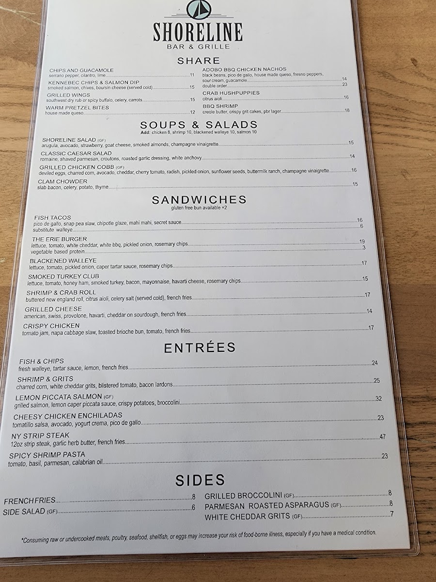 Welcome to Shoreline Bar & Grille, a culinary gem nestled along the picturesque shores of Lake Erie at 2 Sassafras Pier, Erie, PA. This restaurant is more than just a dining spot; it’s a destination where food meets breathtaking views, and every meal becomes a memorable experience.